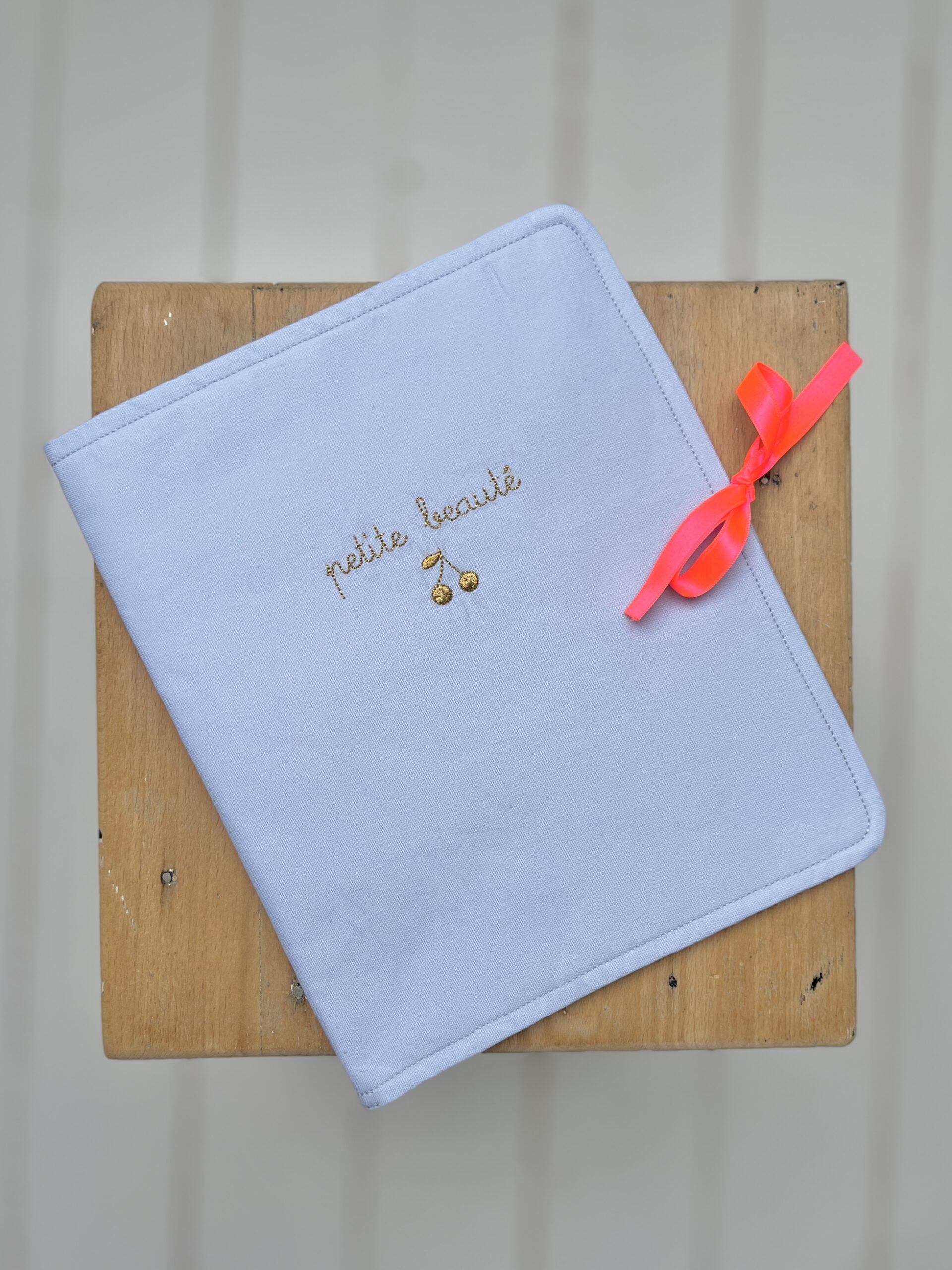 Il s’ouvre comme un livre il peut contenir environ 16 barrettes Brunette. Il est matelassé et se ferme par un joli ruban rose fluo pour une touche pep’s.