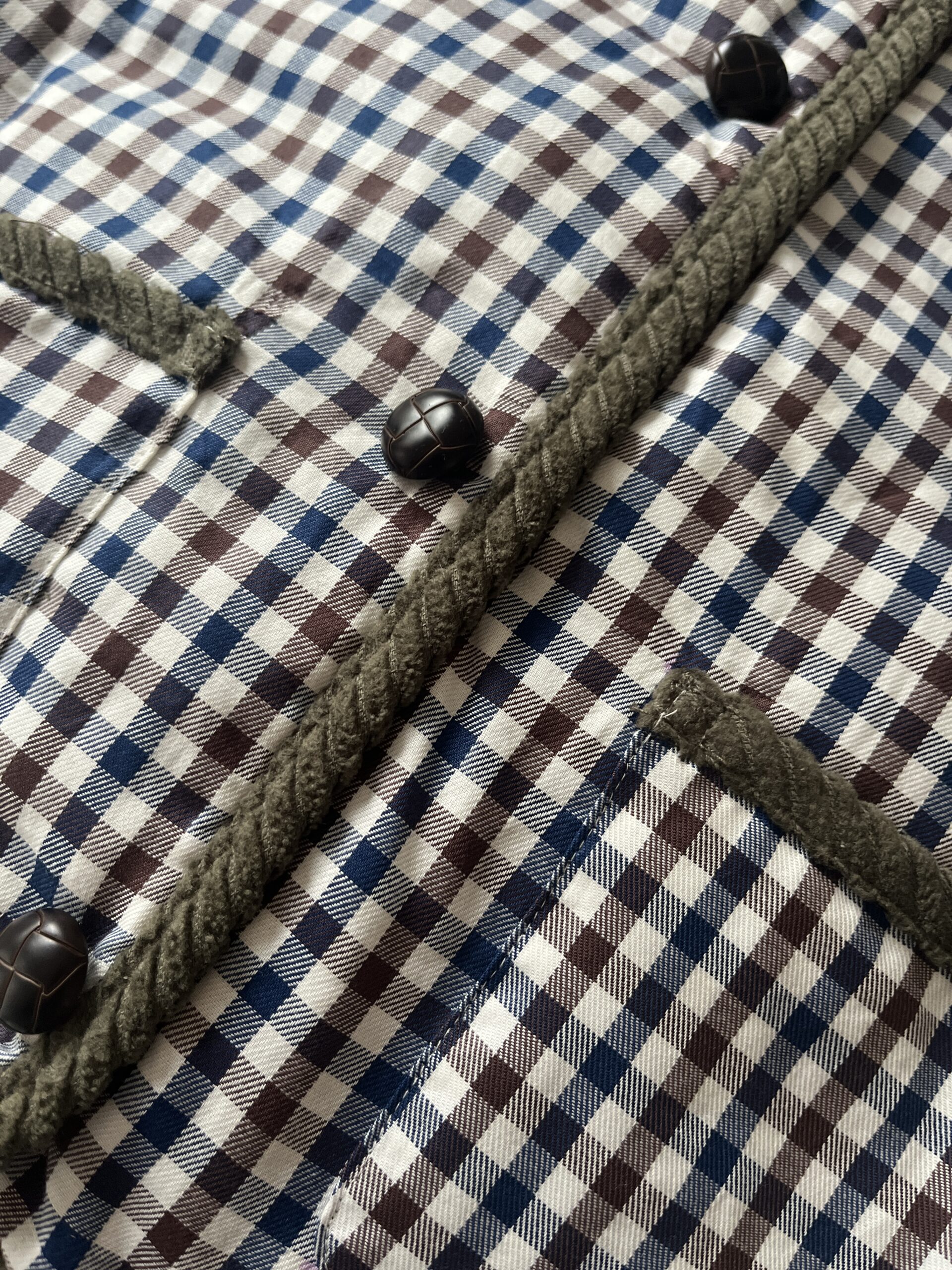 Quoi de mieux que les journées d’hiver pour sa petite veste douillette! La veste Eustache fait son entrée dans la garde-robe de Mes Petits Nuages. Elle est entièrement réversible avec ses boutons de chaque côté, à porter côté vichy marine et marron ou côté velours côtelé. Son petit col, ses jolis boutons, ses poches travaillées, son côté molletoné sont autant de détail qui en font une pièce ravissante pour nos petits gars.