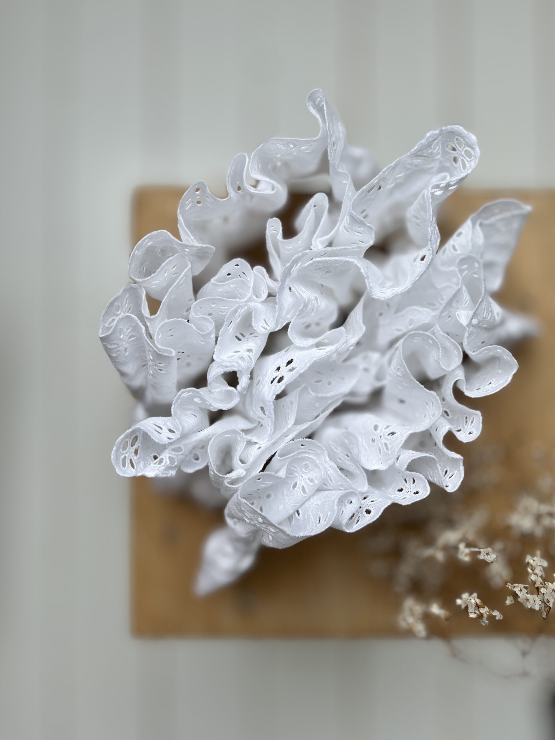 On adore son tissu: un galon de broderie anglaise et une popeline blanche avec une jolie tenue. Bref, notre col Hortense a vraiment tout pour plaire !