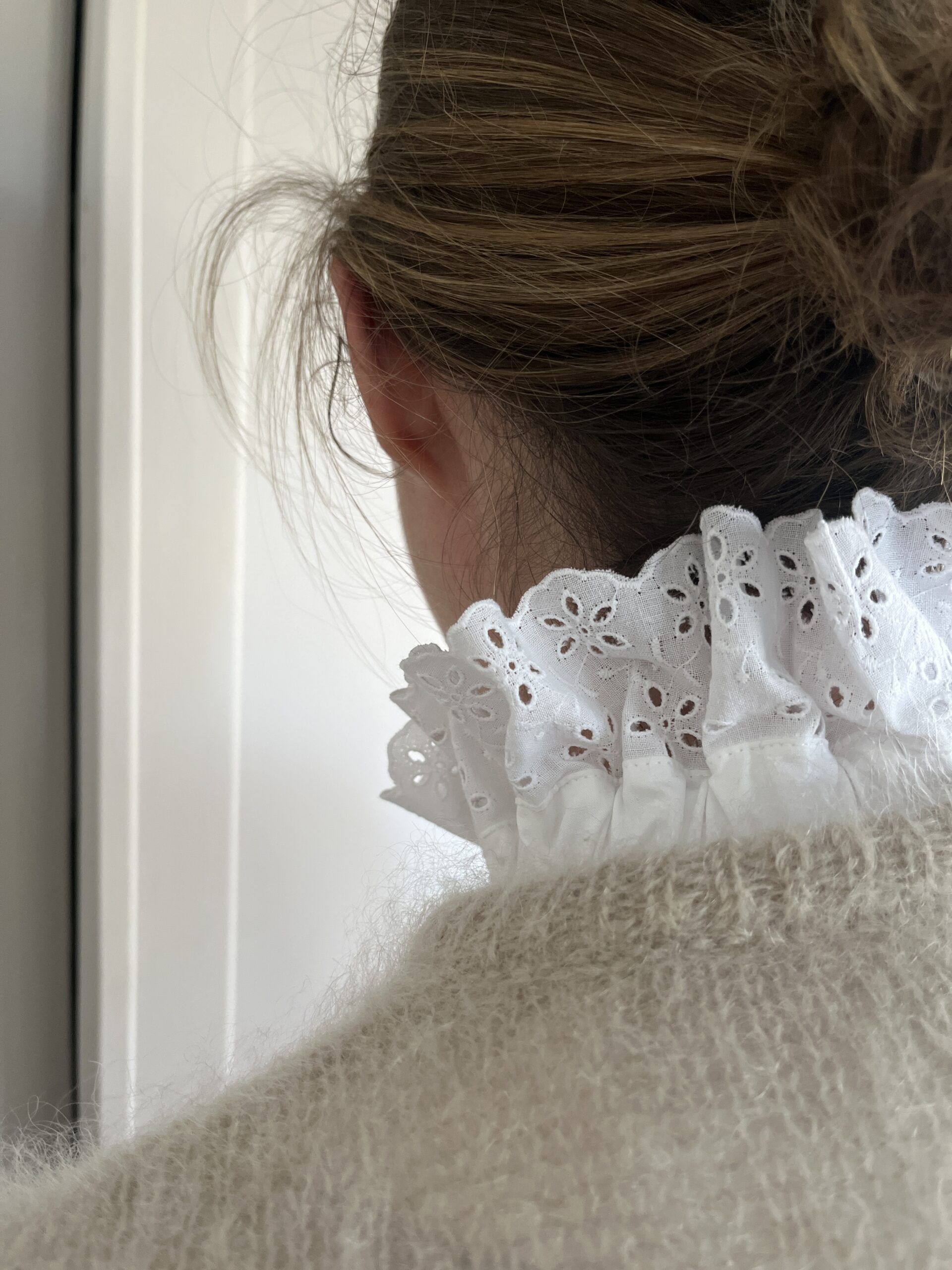 C’est le nouveau must have ! L’accessoire qu’il faut à toutes les mamans : le col volanté Hortense bien sûr ! Il est élastiqué et s’enfile par la tête. Il se met sous ou sur un pull, un gilet, voilà comment avoir l’effet d’un joli chemisier en un claquement de doigts!