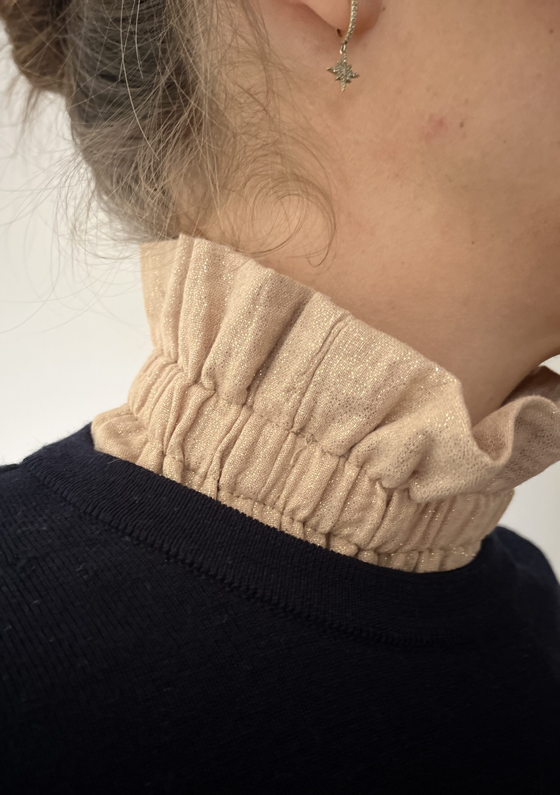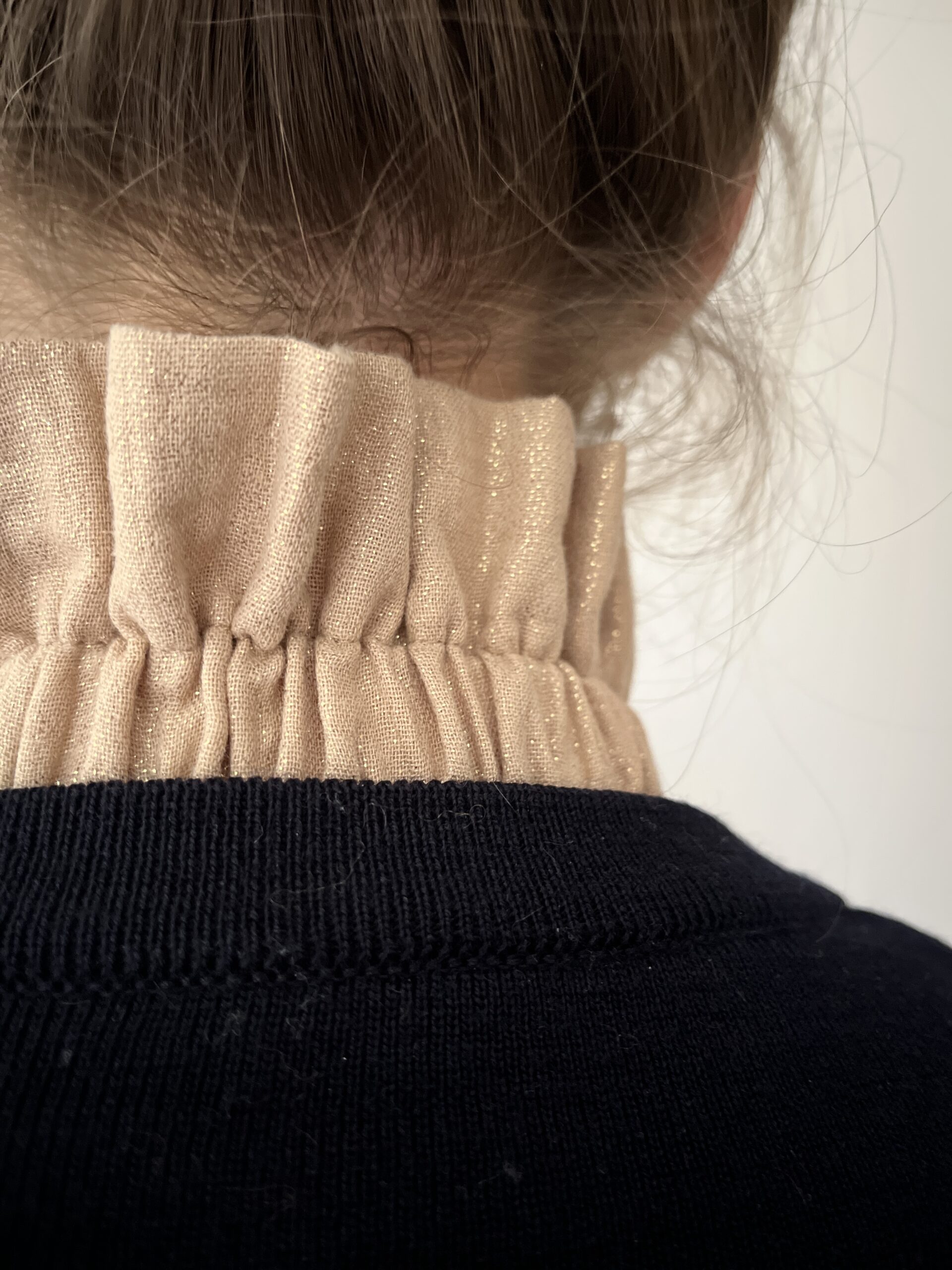 On adore son tissu: une double gaze dorée avec une jolie tenue. Bref, notre col Hortense a vraiment tout pour plaire !