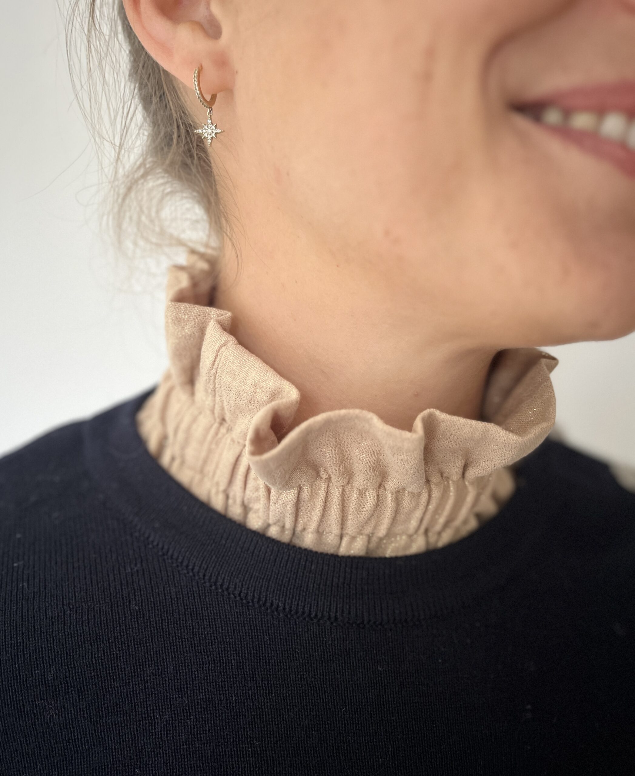 C’est le nouveau must have ! L’accessoire qu’il faut à toutes les mamans : le col volanté Hortense bien sûr ! Il est élastiqué et s’enfile par la tête. Il se met sous ou sur un pull, un gilet, voilà comment avoir l’effet d’un joli chemisier en un claquement de doigts!