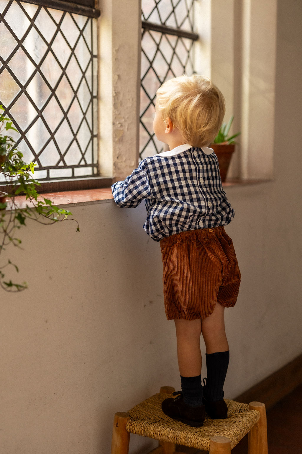 Joseph est un petit short court en velours de coton coloris écureuil. Il est élastiqué à l’arrière de la taille pour plus de confort. Les bretelles en Y amovibles, réglables et élastiquées peuvent se retirer entièrement et permettent d’imaginer différents looks pour votre bambin. Deux boutons en bois viennent habiller le devant du short. L’arrière des cuisses est élastiqué pour un effet bloomer. Intemporel, il met en valeur les petits cuissots des kids, et peut bien sûr se porter aussi avec une paire de chaussettes hautes à la mi-saison.