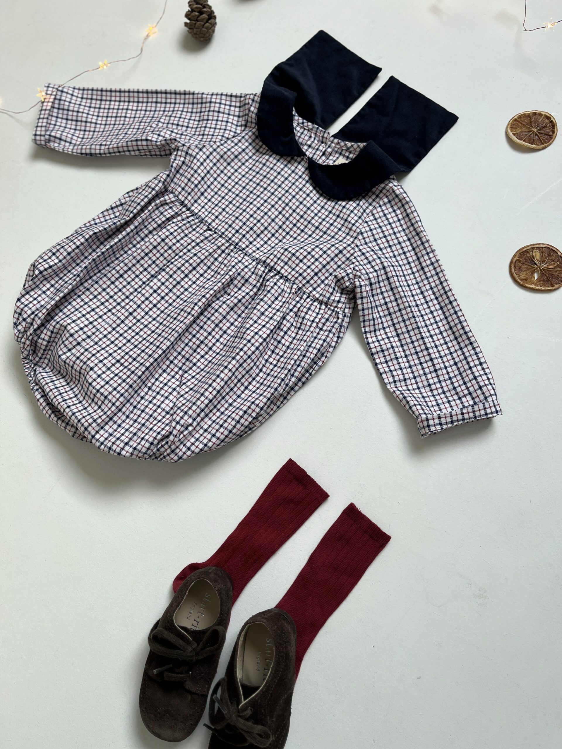 La barboteuse à manches Edgar carreaux marine et rouge et col velours
