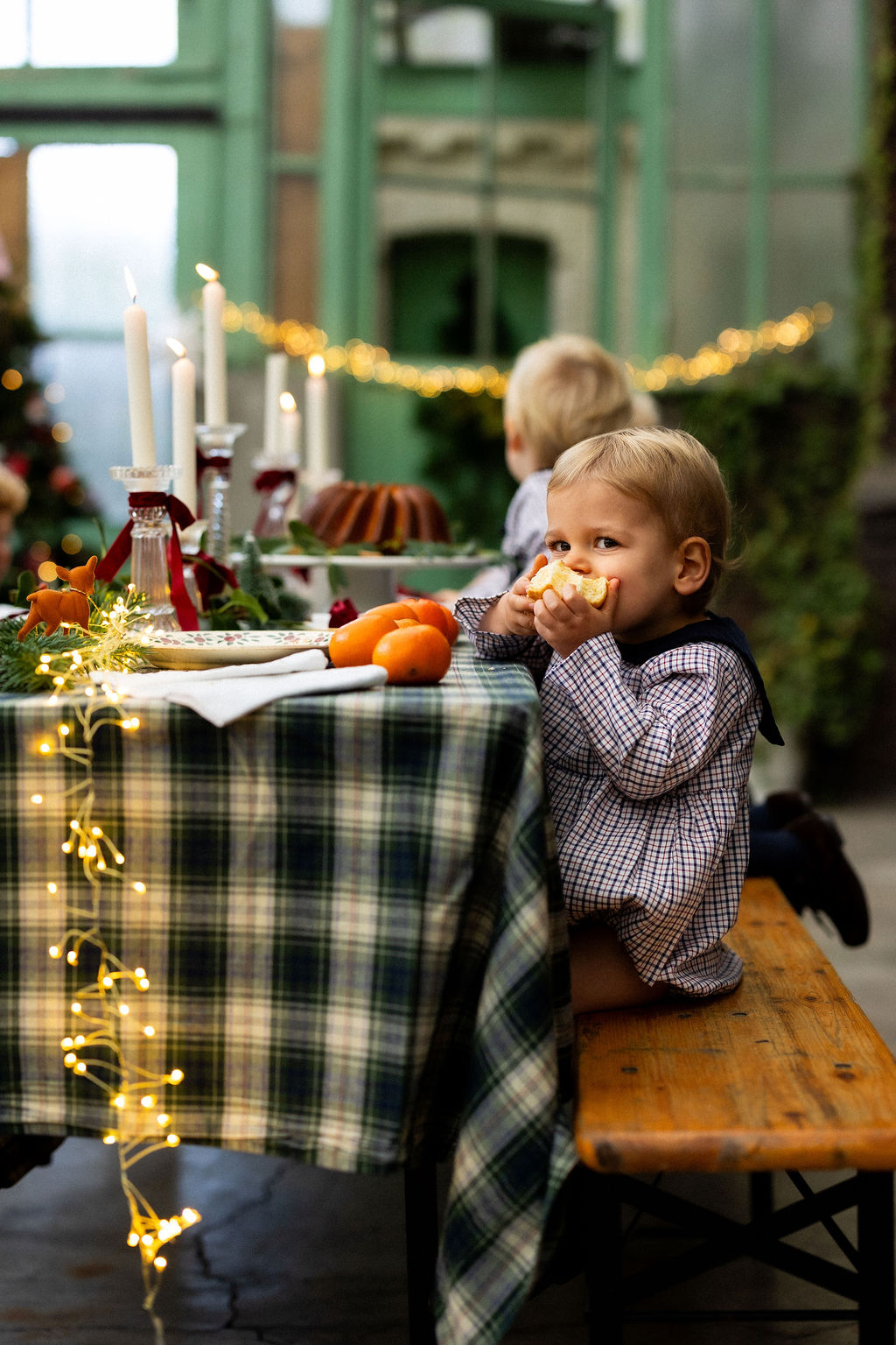Pour cette capsule de fêtes, le col est en velours milleraies marine
