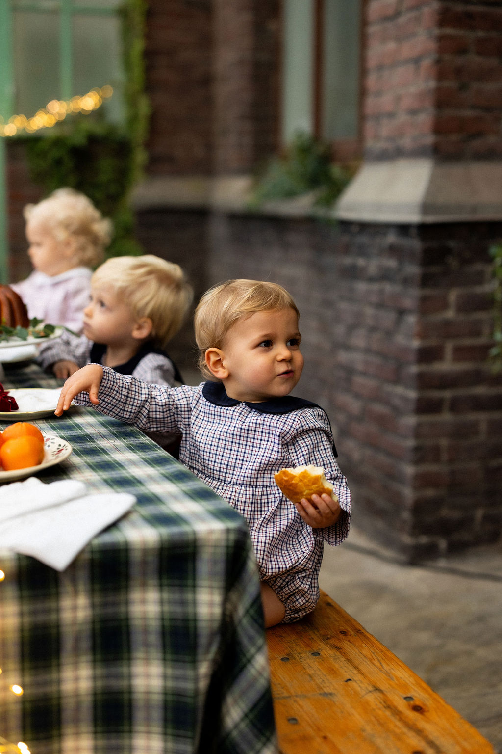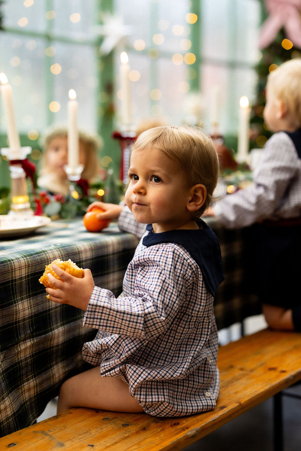 Edgar est une barboteuse mixte à col , qui convient parfaitement à tous les bébés. Son tissu intemporel à petits carreaux marines et rouges, sa forme à empiècement et ses manches longues à revers en font une pièce ravissante. Une ouverture boutonnée à l’entrejambe permet de faciliter le change de bébé.