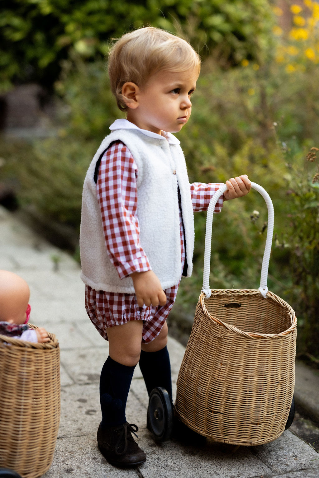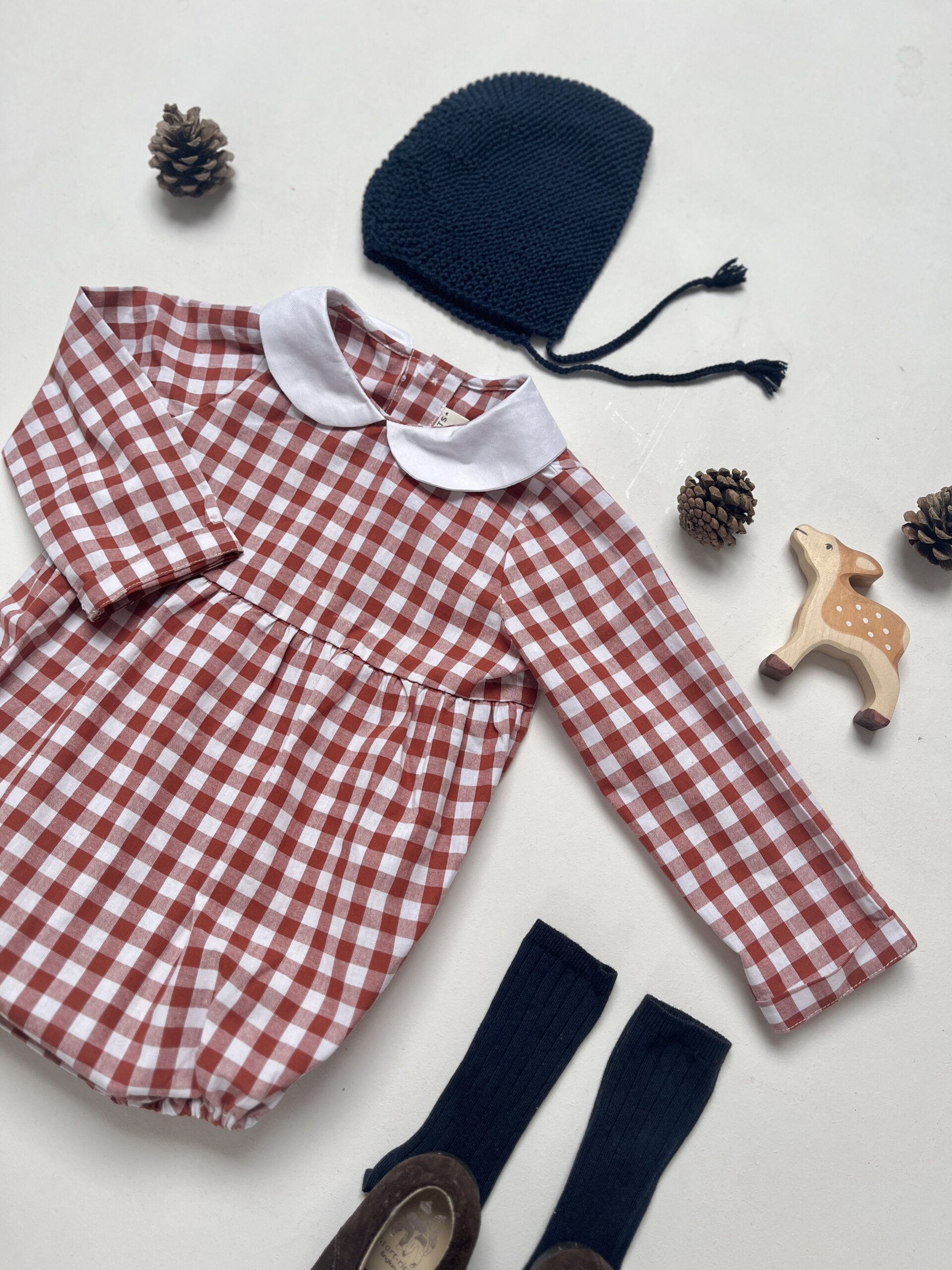 Edgar est une barboteuse mixte à col claudine blanc, qui convient parfaitement à tous les bébés. Son tissu intemporel en vichy rouille, sa forme à empiècement en font une pièce ravissante. Une ouverture boutonnée à l’entrejambe permet de faciliter le change de bébé. Elle sera parfaite pour tous les jours avec des chaussettes hautes ou des petits collants!
