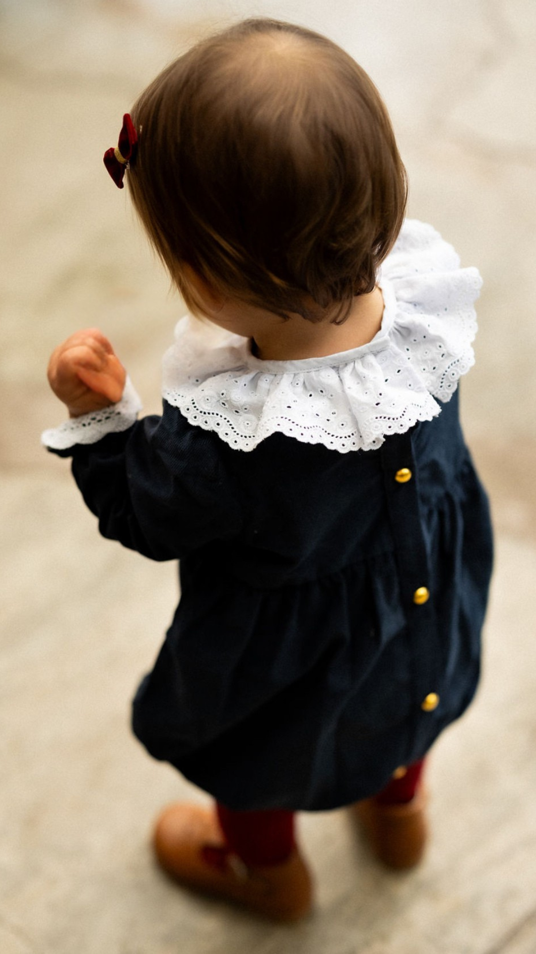 Chez Mes Petits Nuages, on connaît votre passion pour les barboteuses ! Apolline est la nouveauté pour bébé cet hiver. Une barboteuse en velours marine tout doux. Le must ? Son col volanté en broderie anglaise, ses bas de manches avec un galon brodé, son double pli devant et ses boutons dorés.