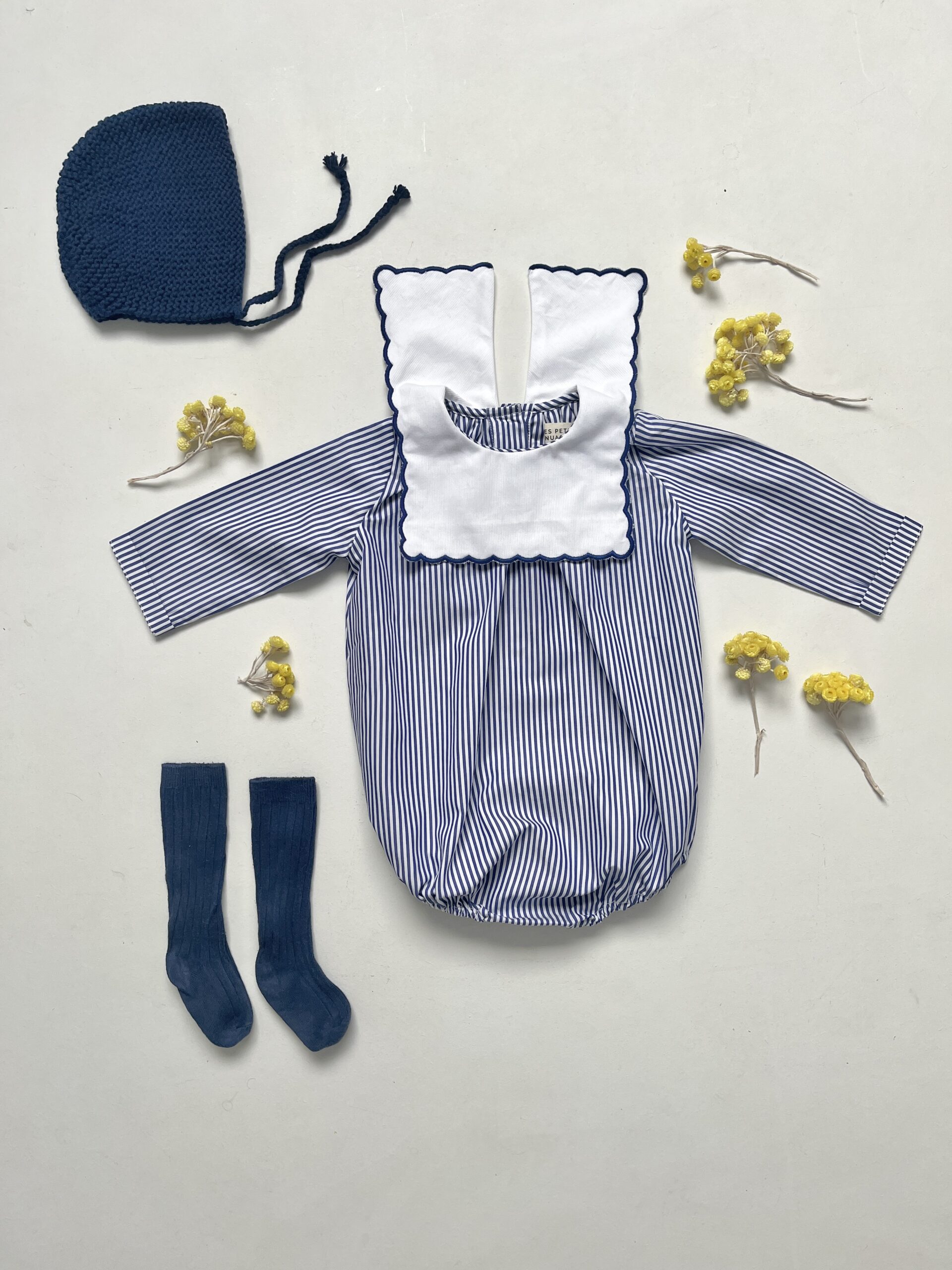 La barboteuse rayée bleu col festonné façon Petit Beurre