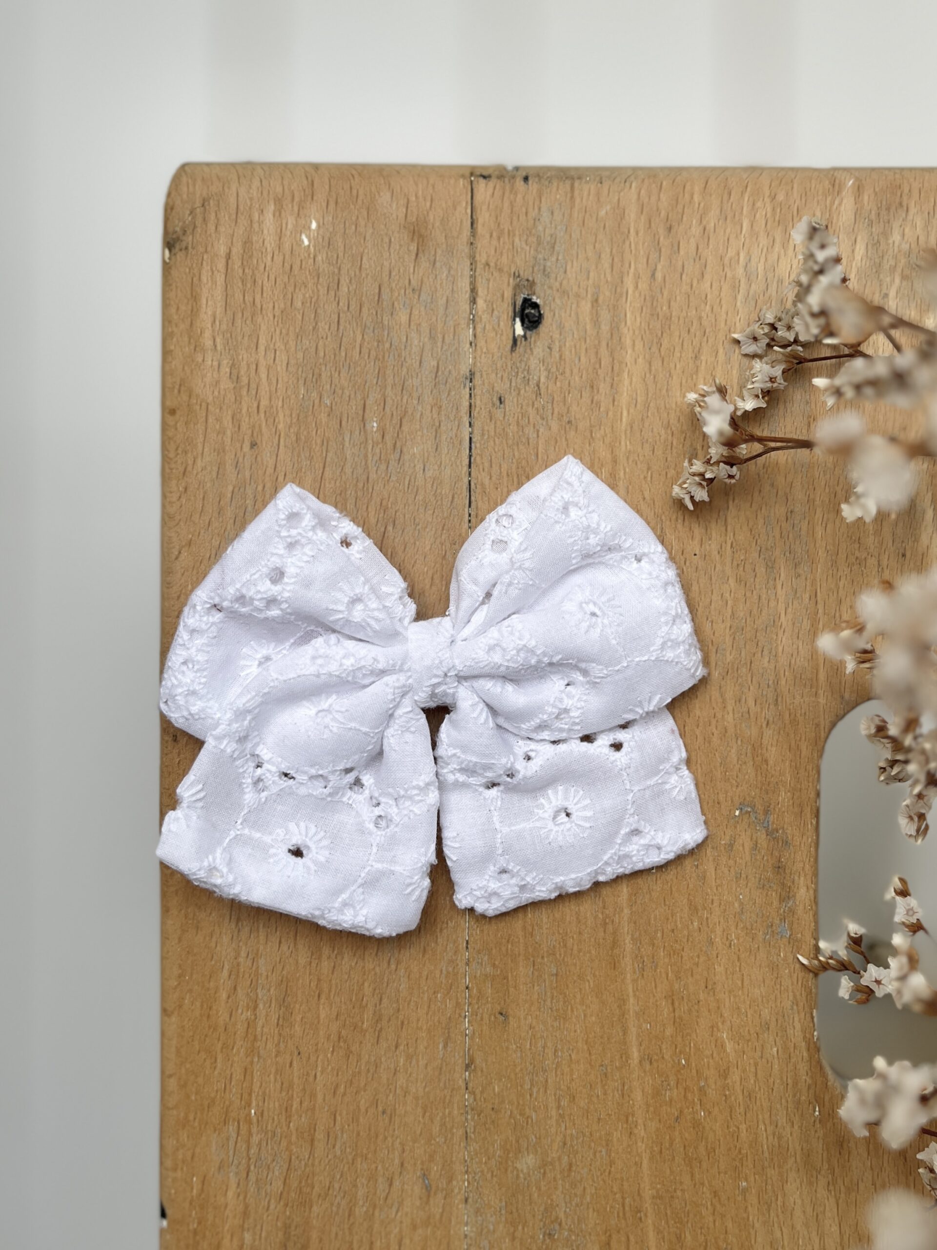 La barrette à gros noeud Brunette blanc en broderie anglaise