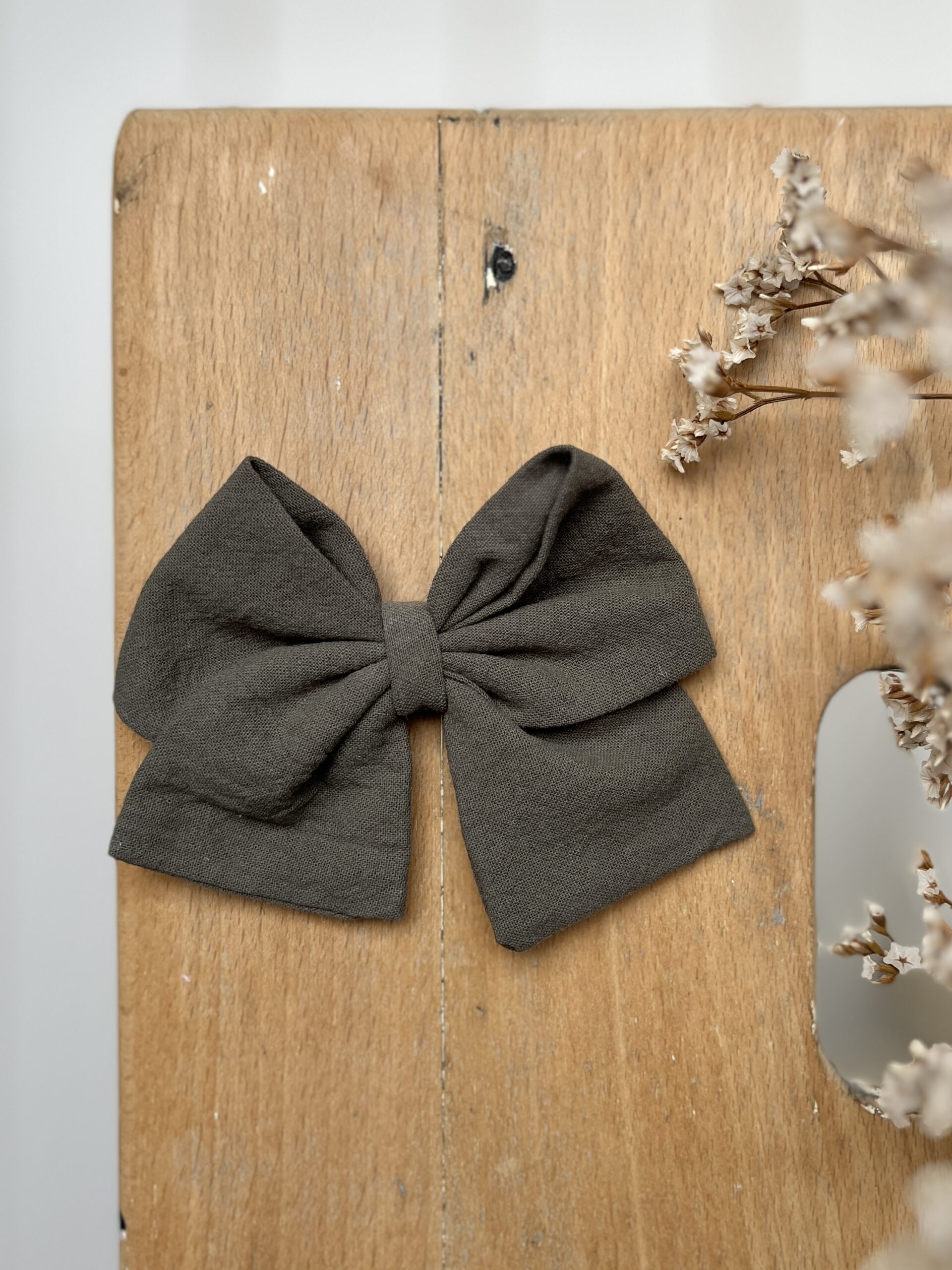 La barrette à gros nœud Brunette kaki