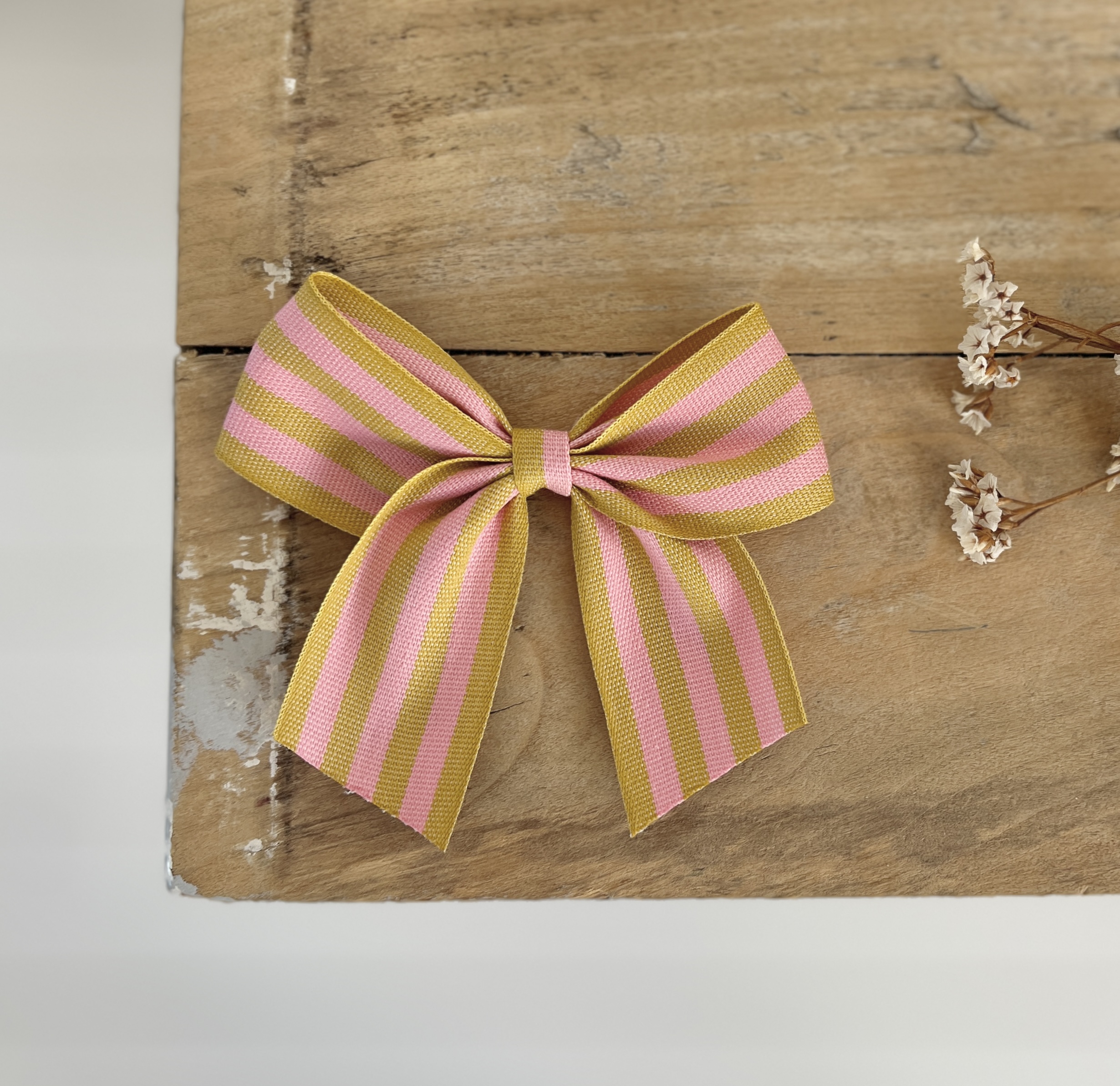 La barrette à gros noeud Brunette rayures transat ocre et rose