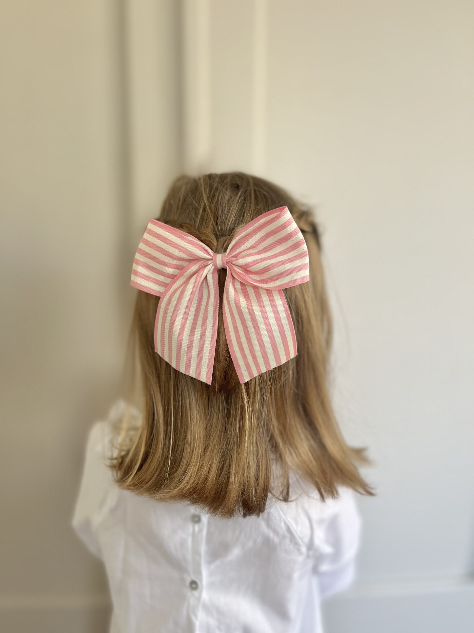 La barrette à gros noeud Brunette rayures transat rose (taille XL)