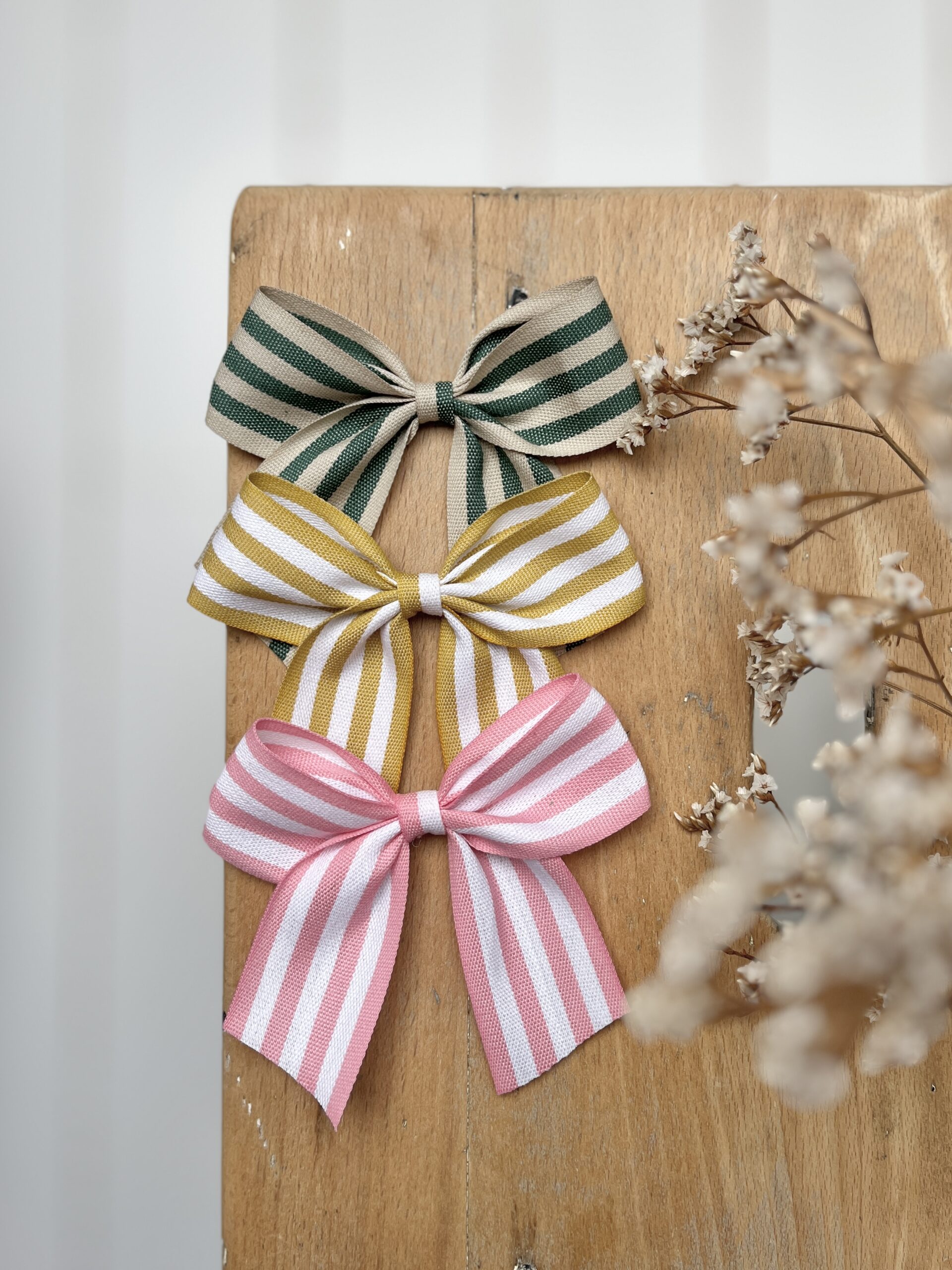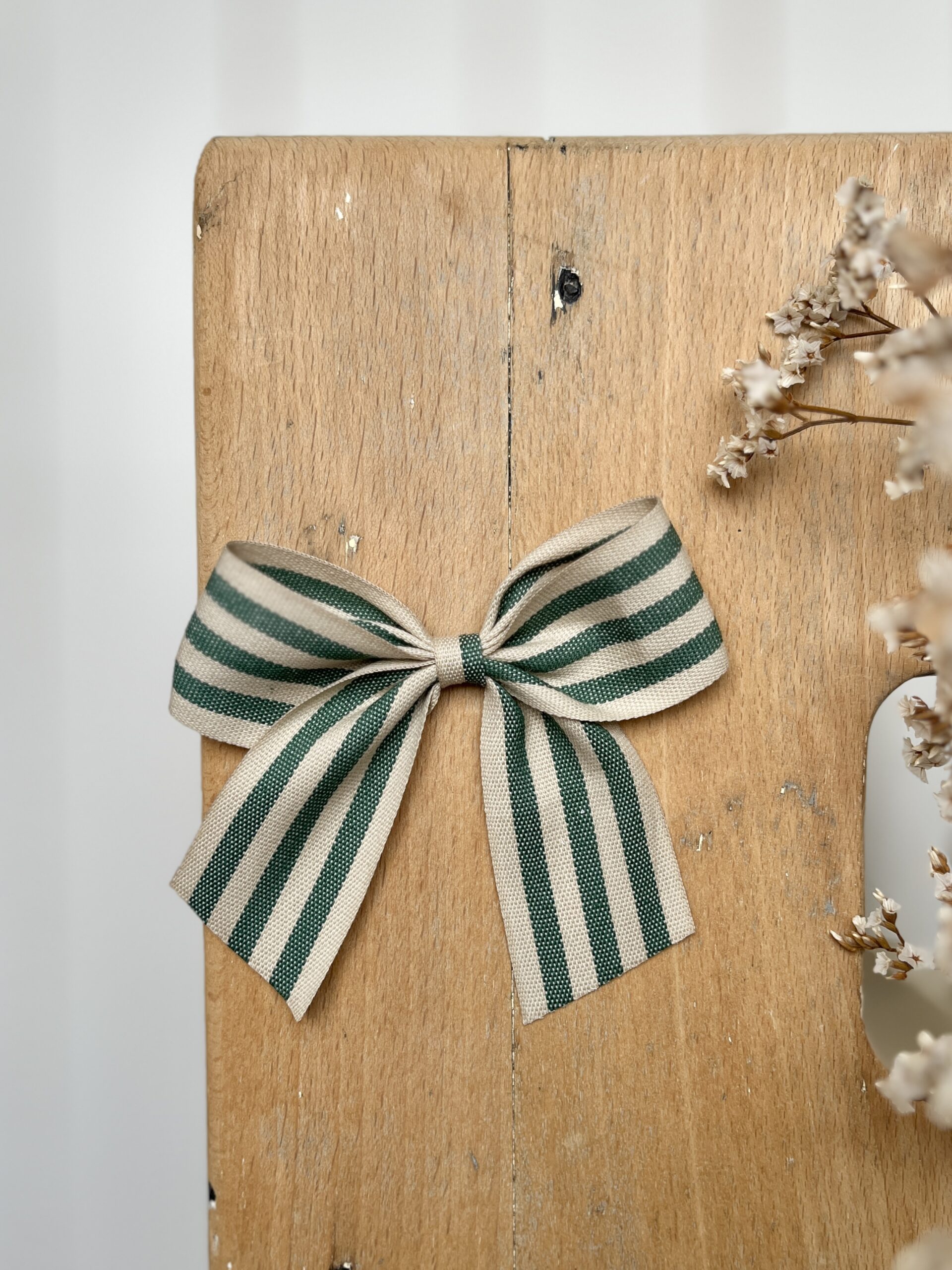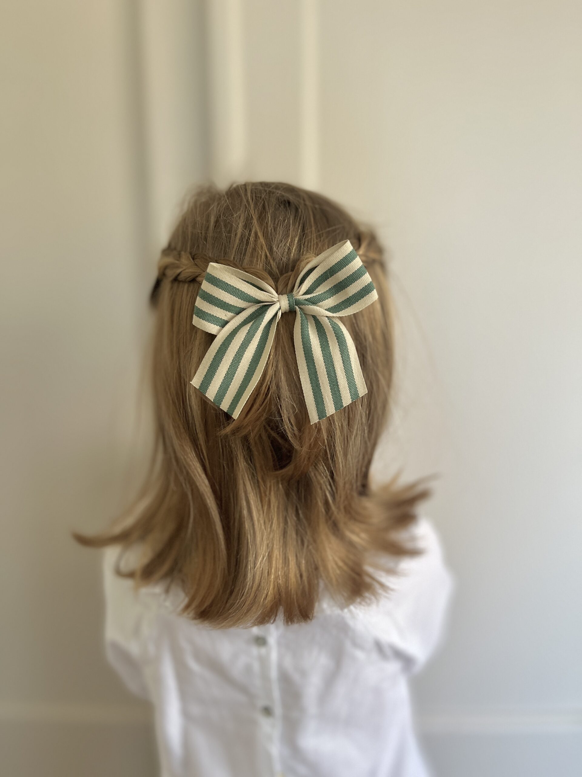 La barrette à gros noeud Brunette rayures transat vert et ficelle