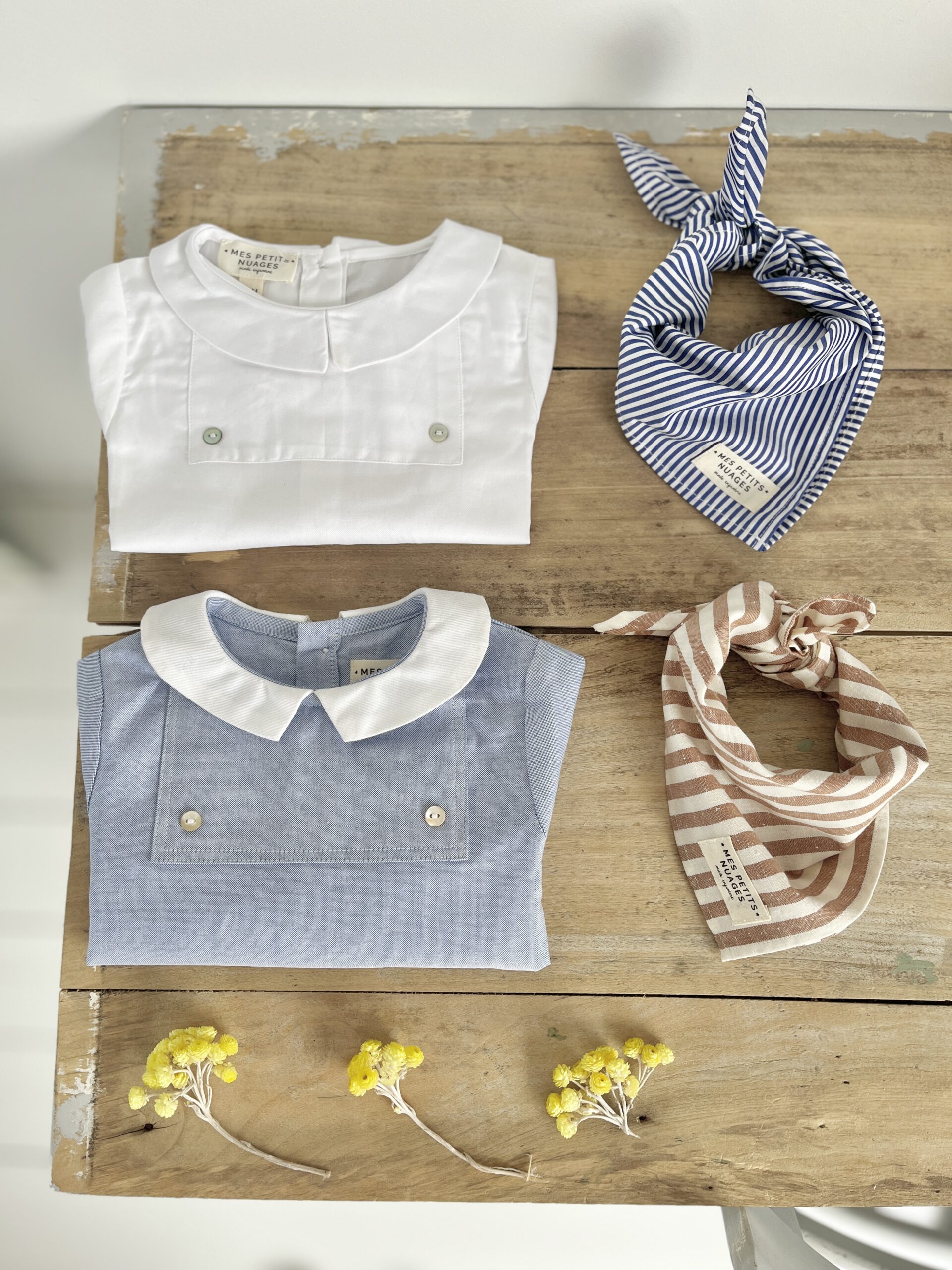 La touche Mes Petits Nuages : La blouse César s’accorde parfaitement avec le short à bretelles Joseph