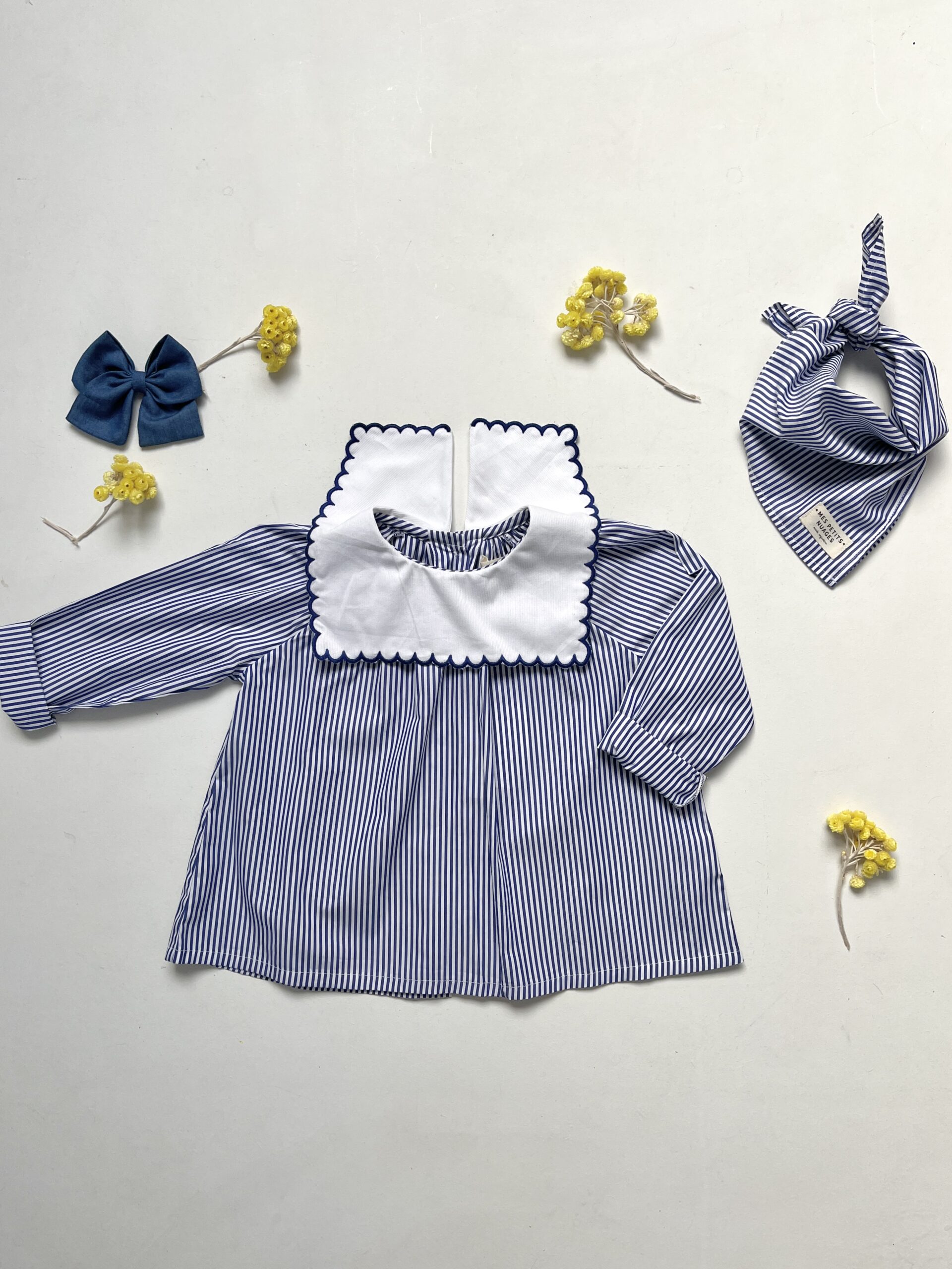 La blouse rayée bleu col festonné façon Petit Beurre rayée bleu