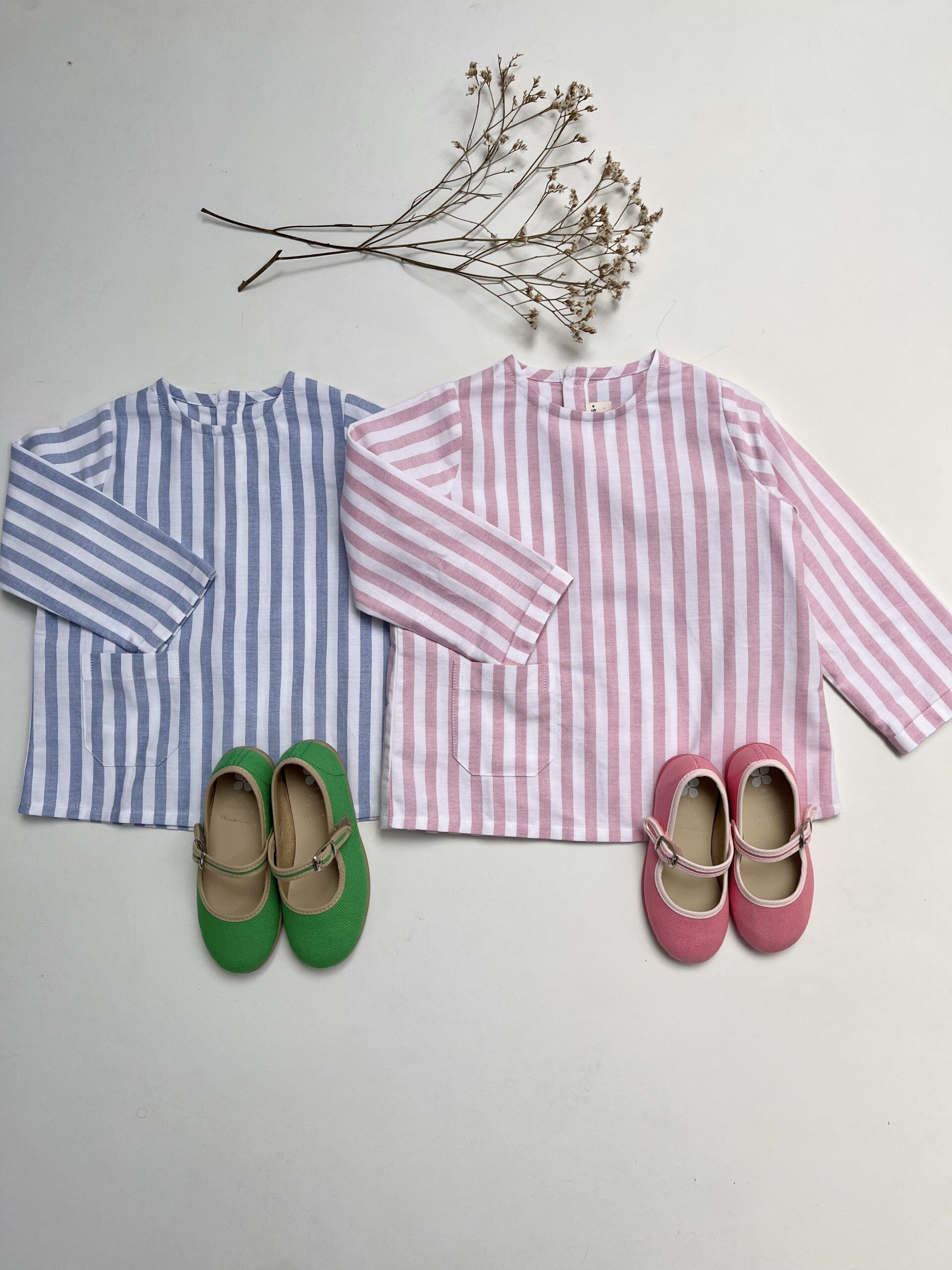 Intemporelle, notre blouse Barnabé s’associe facilement aux tenues de vos kids. Sans col, elle convient aussi bien aux garçons qu’aux filles. Elle se ferme dans le dos avec des boutons en nacre. Sa petite poche en bas à droite nous rappelle les blouses des écoliers. Elle est déclinée dans cette caspule en Oxford larges rayures bleues, en Oxford larges rayures roses, et en fines rayures bleues