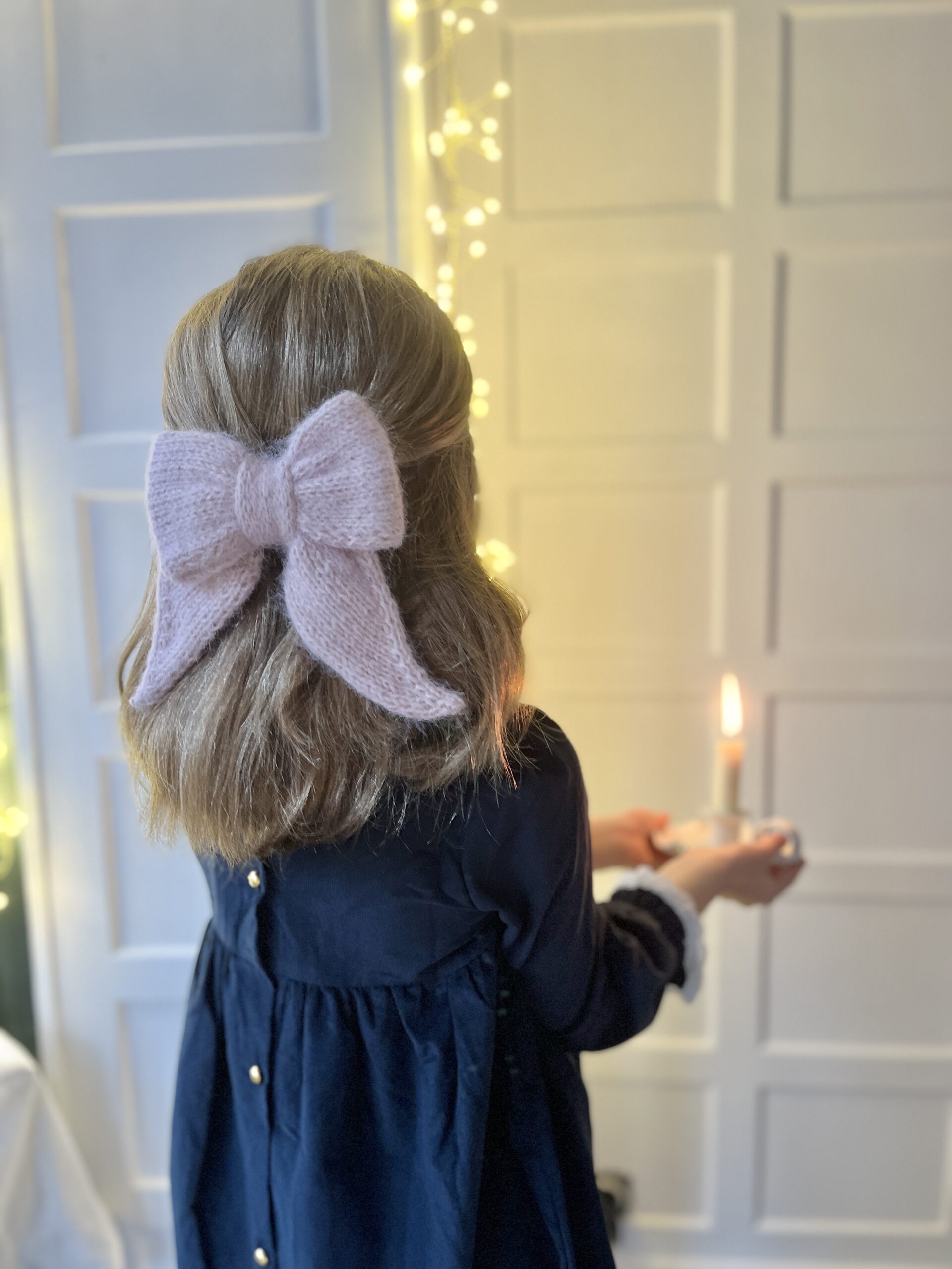 Noël: La maxi barrette à gros nœud Brunette en tricot rose