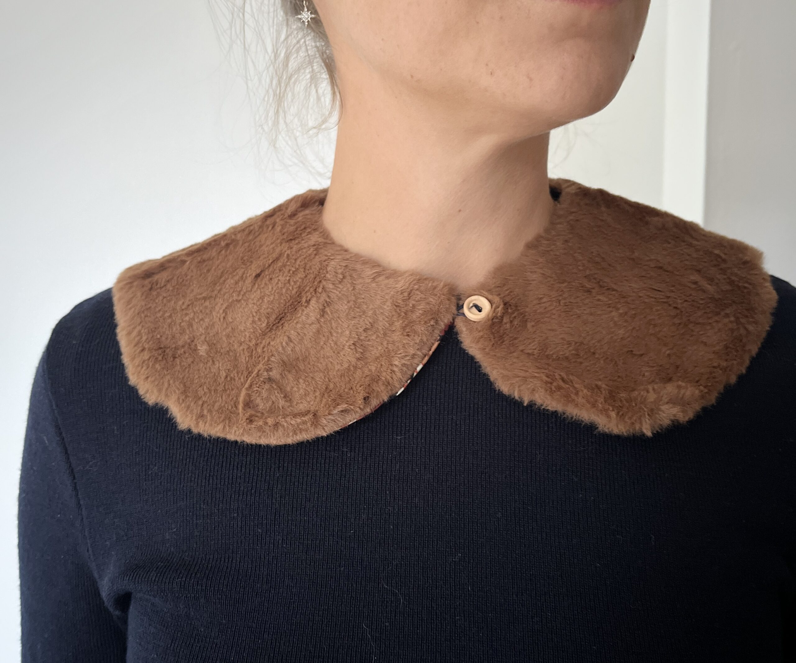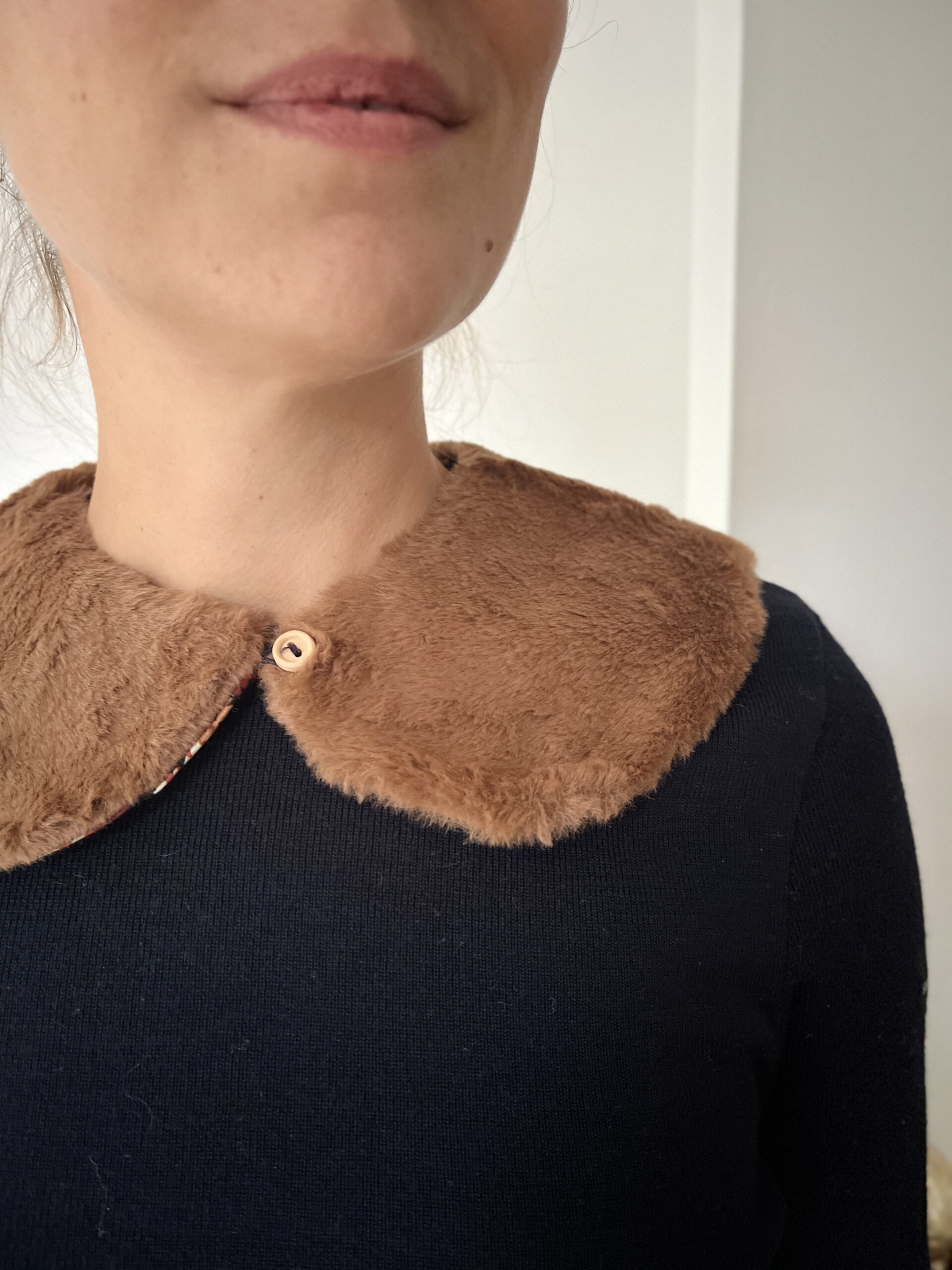 On adore aussi sa doublure : un tartan écossais pour la fourrure verte, un Liberty pour la fourrure fauve. Bref, notre col Marceline a vraiment tout pour plaire !