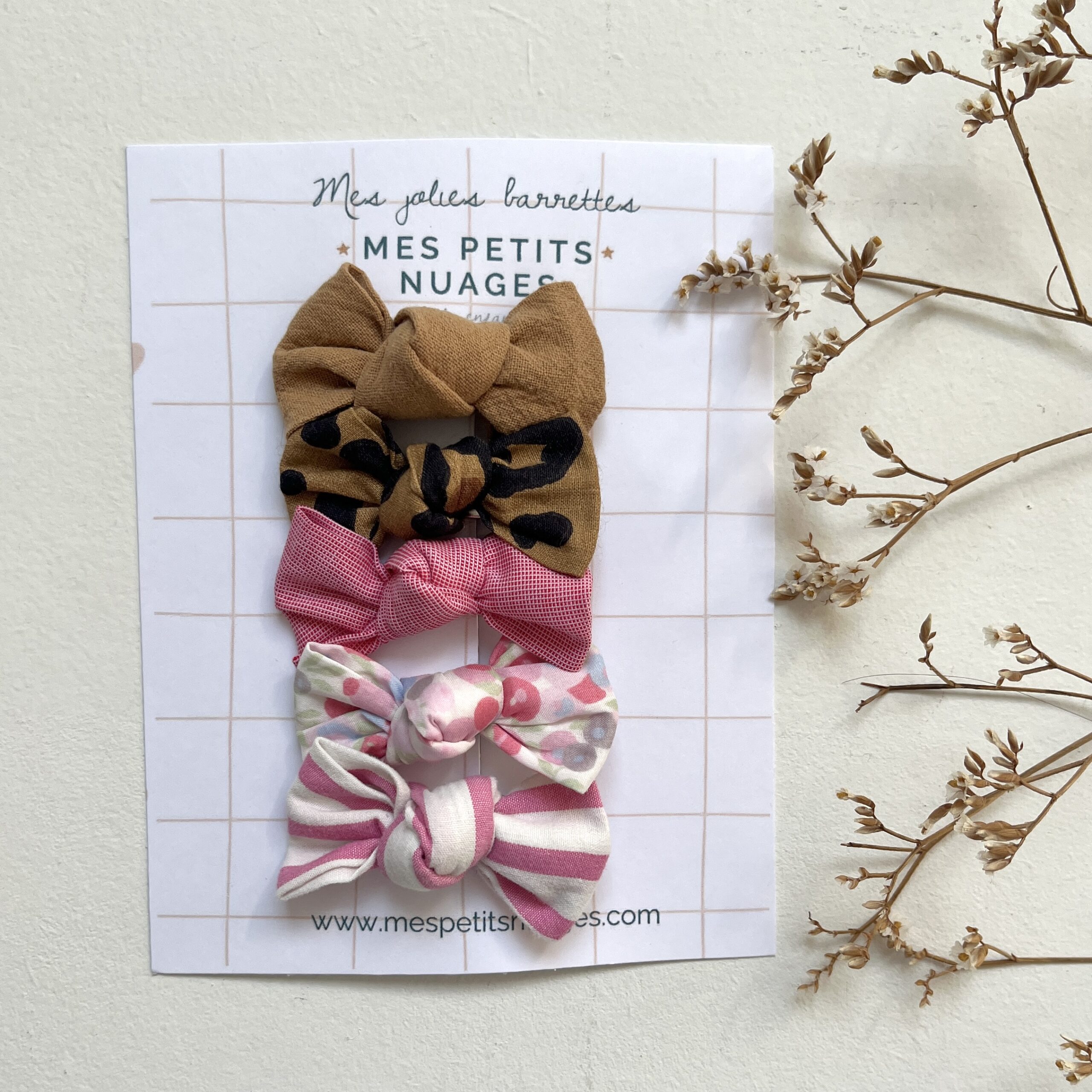 Support pince croco de 4 cm ou élastique – nœud en tissu de 5cm x 2cm