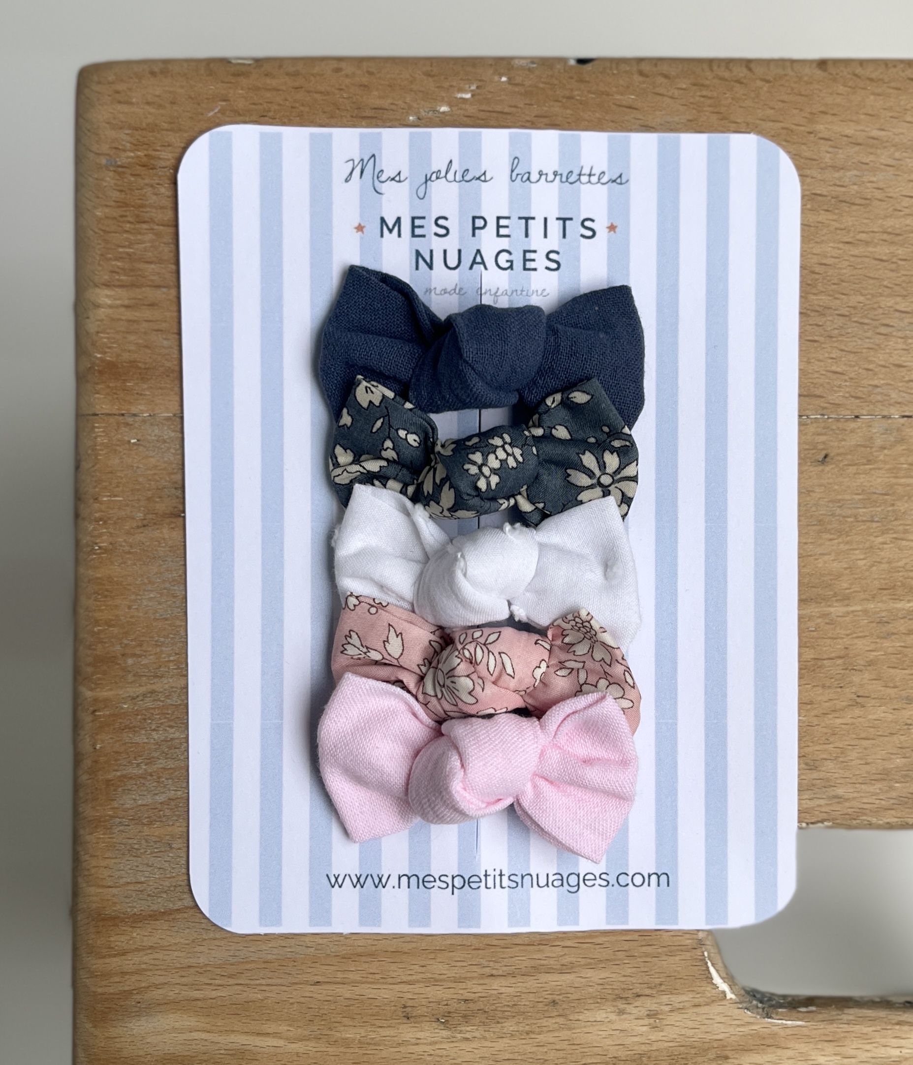 Céleste se décline dans des jolis coloris et motifs qui s’assortiront avec toutes les jolies tenues de vos petites filles. Fixée sur un support pince crocodile de 4 centimètres ou un élastique, la barrette convient aux bébés qui ont quelques petits cheveux.
