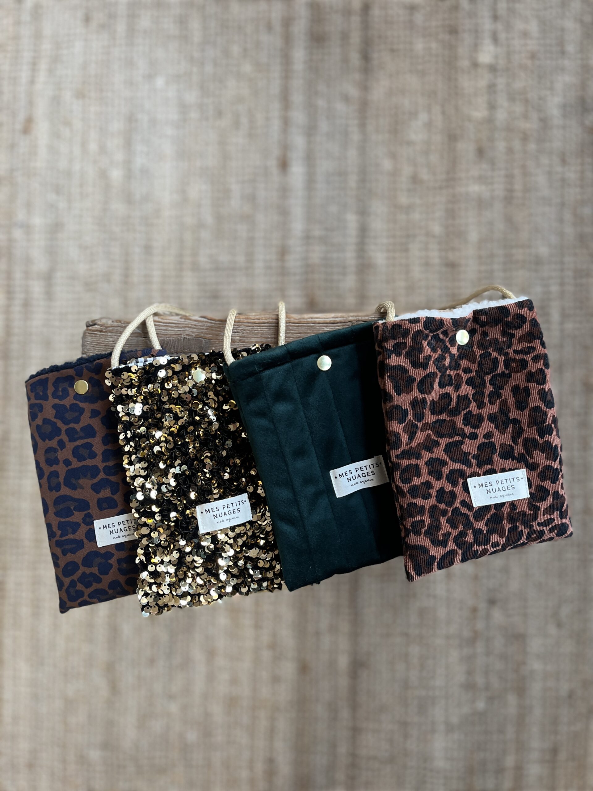 Imaginée pour les mamans, pour y glisser son téléphone, un clé et une CB sans s’encombrer en soirée avec un sac un main!