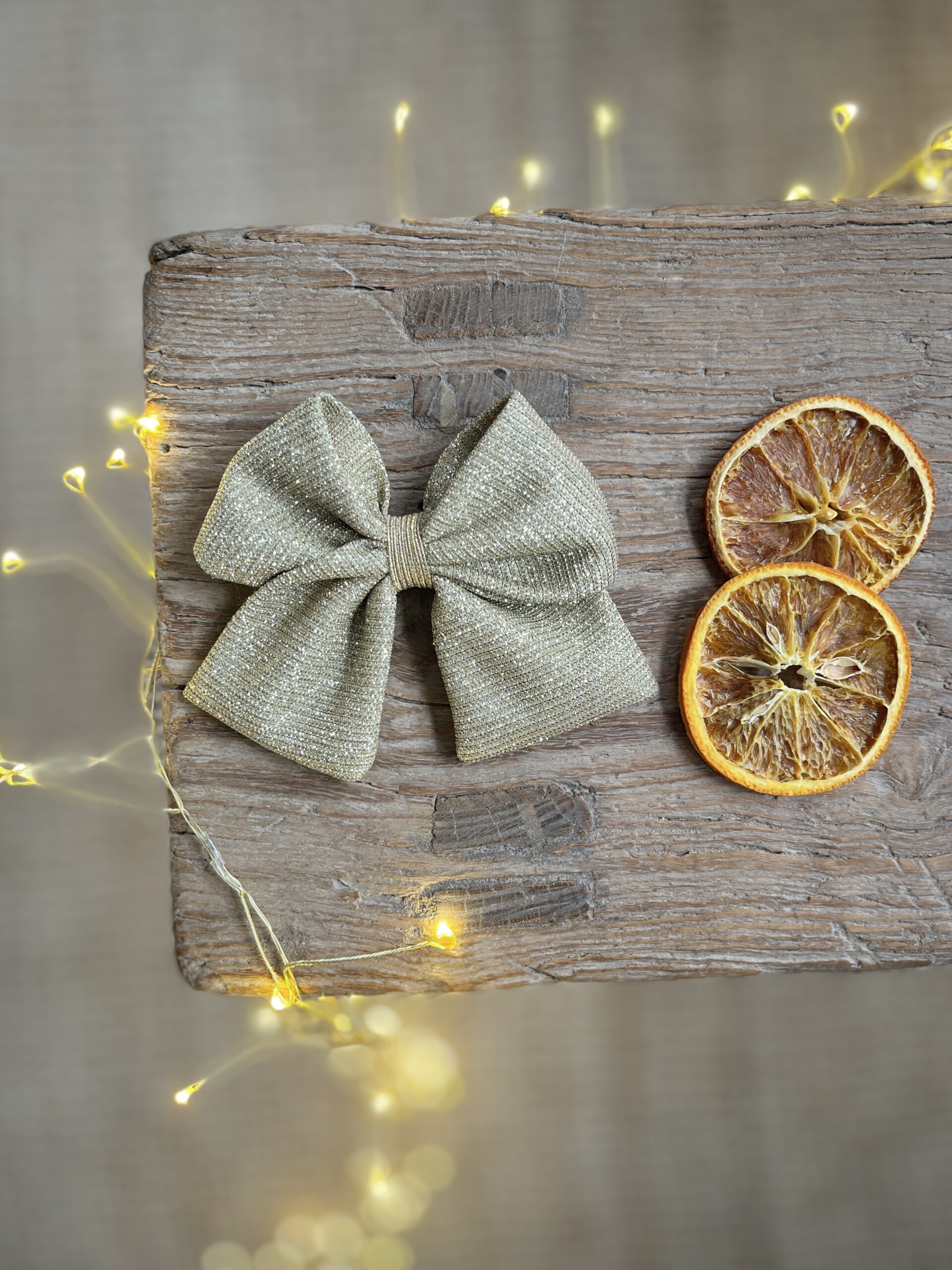 Noël: La barrette à gros nœud Brunette dorée à paillettes