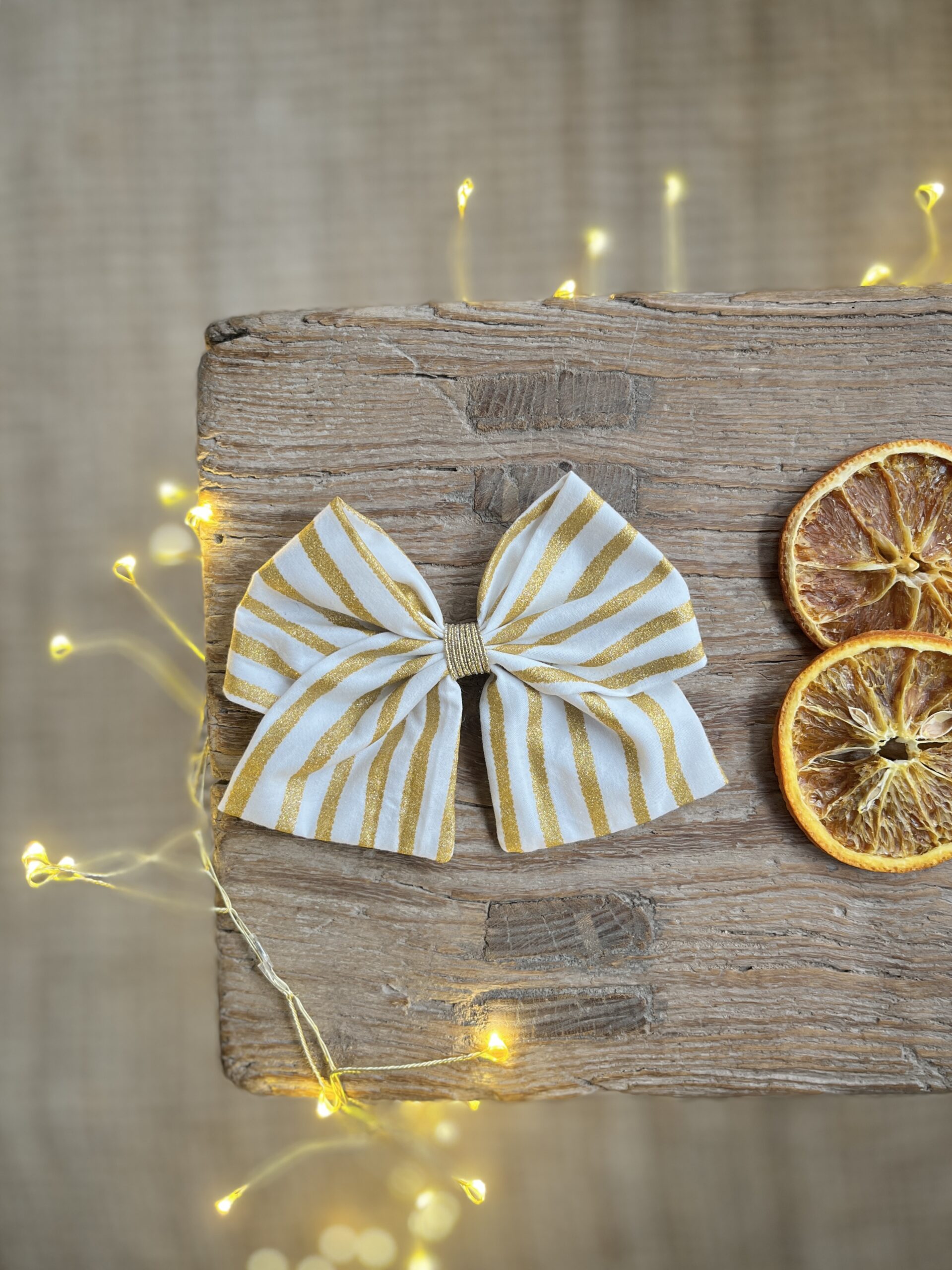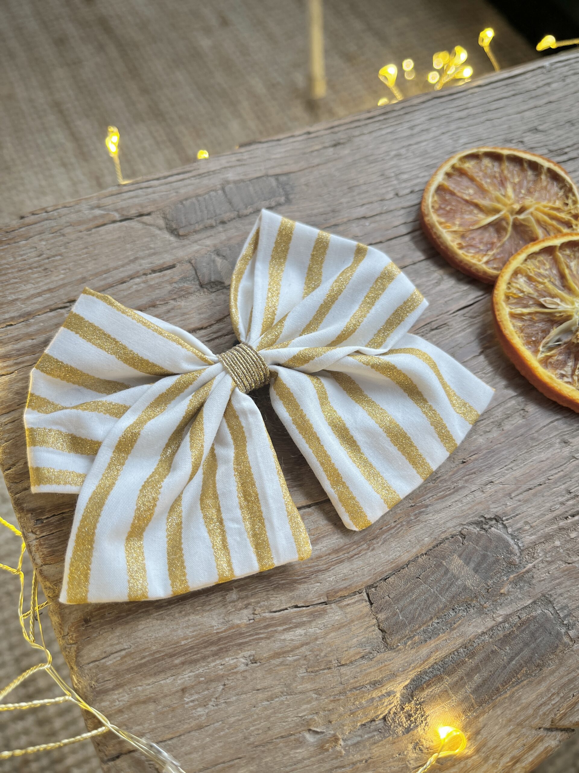 Noël: La barrette à gros nœud Brunette rayures dorées