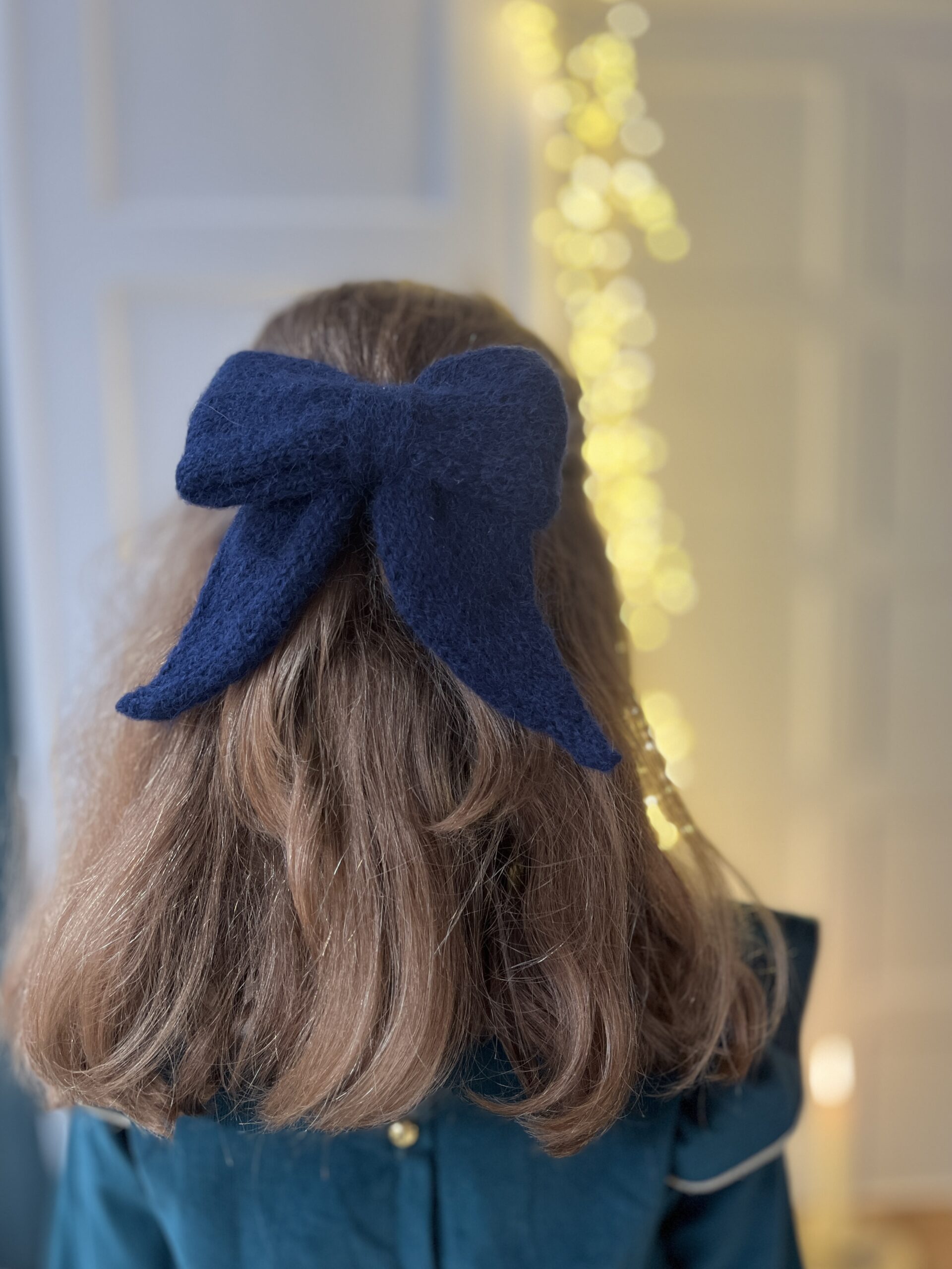 Noël: La maxi barrette à gros nœud Brunette en tricot marine