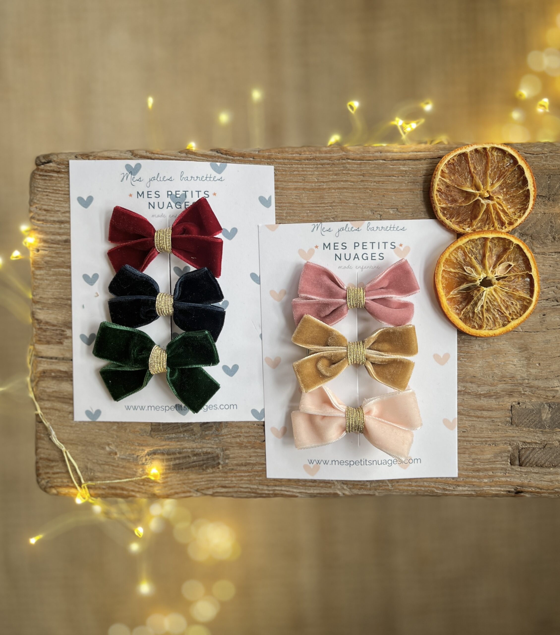 Noël: Les barrettes petits nœuds Pia de fête en velours